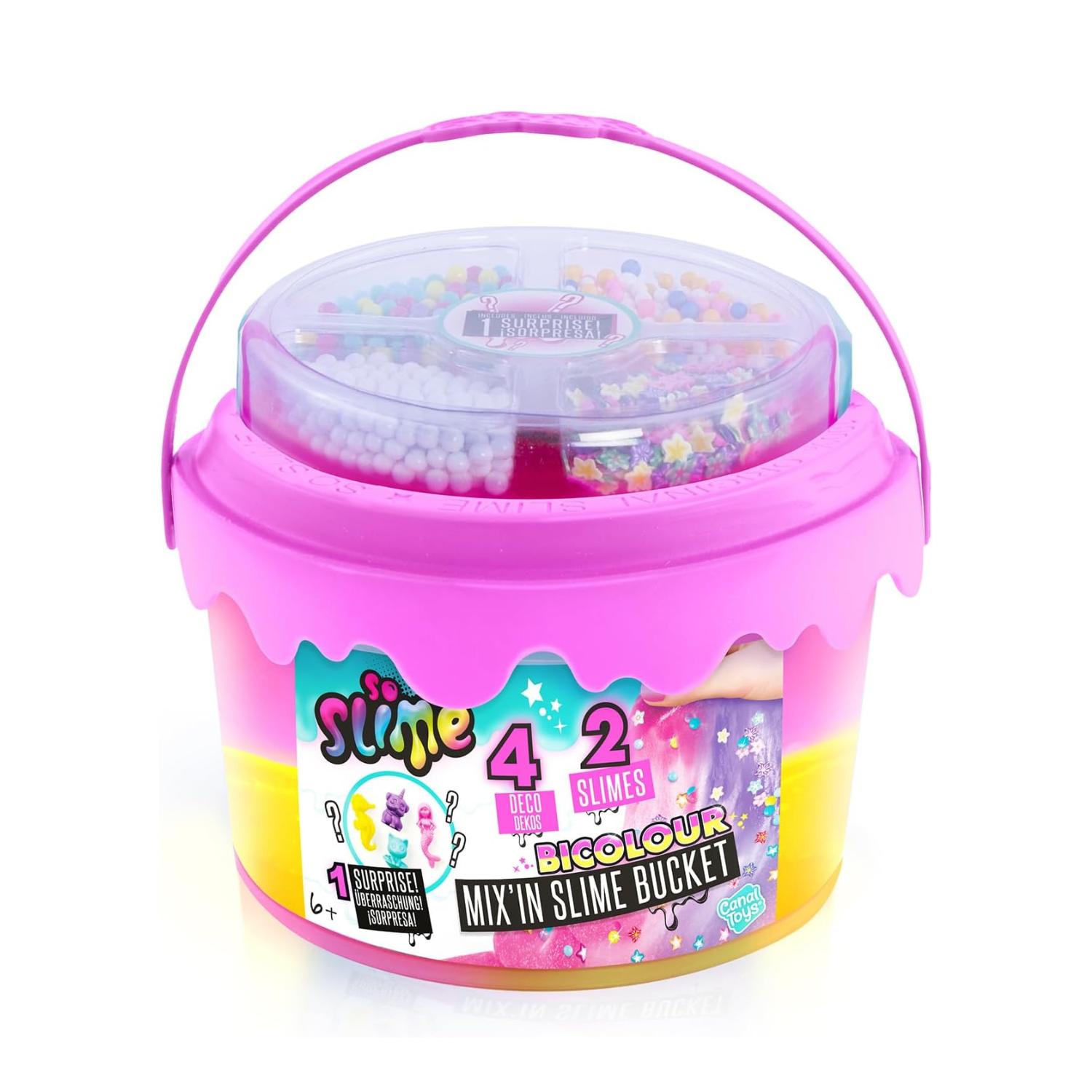 The So Slime Mix in Bucket includes two colourful slimes, a surprise character and fun decorations that kids can mix and customise. It offers a simple and engaging hands-on activity for creative play.